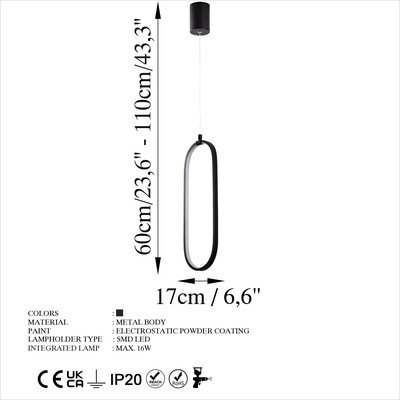 LED, kovové, čierne, 7x17 cm, výška 60 cm