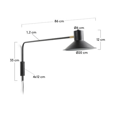 Nástenné svietidlo Aria od značky Kave Home je vyrobené z čierno lakovanej ocele. Má ohybný kĺb, vďaka ktorému si svetlo ľahko nasmerujete tam, kam potrebujete. j Svietidlo je kompatibilné so žiarovkou typu E14 s maximálnym výkonom 25 W. Žiarovka nie je súčasťou balenia.