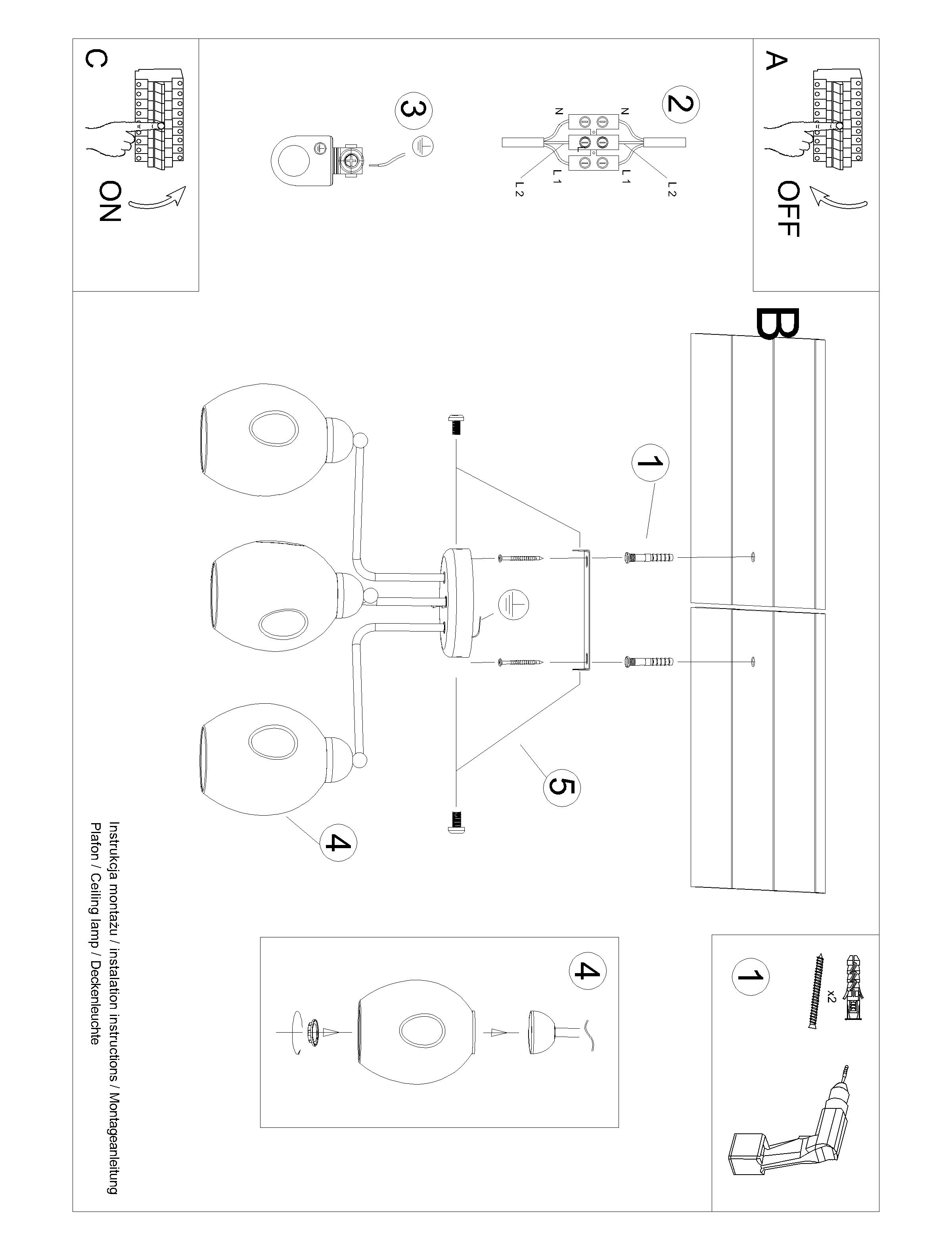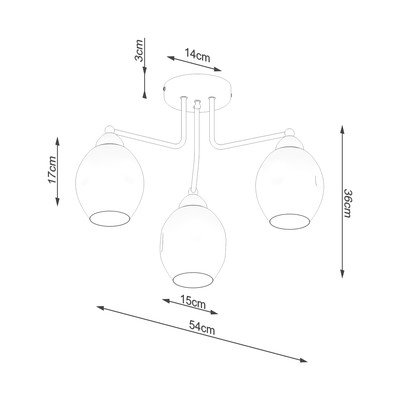 Závesné svietidlo Garten od značky Sollux. Tri sklenené tienidlá zaisťujú rozptýlené svetlo a zároveň pôsobia elegantne.
