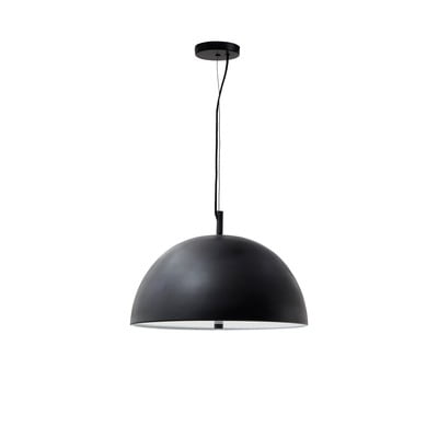 Závesné svietidlo Catlar od značky Kave Home zaujme svojím minimalistickým dizajnom. Tienidlo s priemerom 39,5 cm je vyrobené z kovu s čiernou povrchovou úpravou a jeho spodnú časť tvorí difuzér, ktorý zjemňuje vyžarované svetlo. Svietidlo je kompatibilné so žiarovkami typu E27 s maximálnym výkonom 40 W. Žiarovka nie je súčasťou balenia.