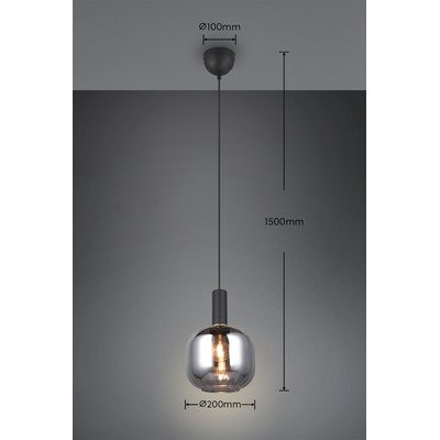 Čierne závesné svietidlo so skleneným tienidlom Diva – Trio