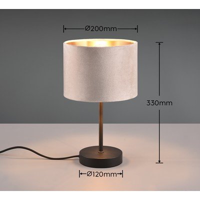 S textilným tienidlom, kovová, do zásuvky, čierna/béžová, výška 33 cm