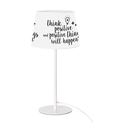 Stolová lampa Think PositiveS textilným tienidlom, kovová/látková, do zásuvky, biela/čierna, výška 42 cm