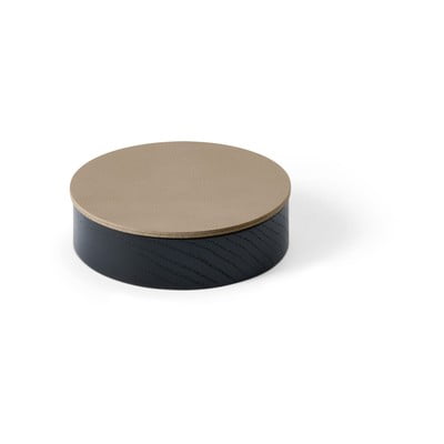 Circle je elegantný úložný box, ktorý sa hodí na ukladanie drobností. Vďaka svojmu okrúhlemu tvaru je ideálny napríklad na uskladnenie podložiek pod poháre, ale poslúži aj na estetické servírovanie alebo na uschovanie šperkov v kúpeľni či korenie v kuchyni. Tento box je vyrobený z európskeho duba a ošetrený rastlinným olejom, veko je potom z recyklovanej kože.