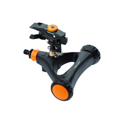 Vlaha je pre záhradu alfou a omegou. K tomu, aby u vás bujnela svieža zeleň pomôžu spoľahlivé zavlažovacie nástroje značky Fiskars. Odolný kovový postrekovač obsahuje ovládacie prvky pre jednoduché nastavenie vzdialenosti závlahy, typu rozstreku (prúd až hmla) a kontroly rotácie pre presné zavlažovanie akejkoľvek oblasti vašej záhrady. Stojí na kovovej tŕňovej základni a oblasť zavlaženia možno nastaviť až na 500 m².