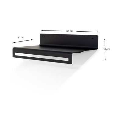 S poličkou, kovový, čierny, šírka 60 cm, výška 18 cm, hĺbka 30 cm