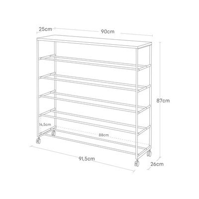 KovovýČiernyPočet párov topánok 20 Šírka 90,5 cmVýška 87 cmHĺbka 26 cm