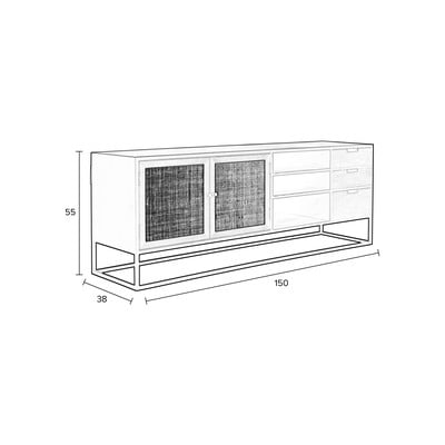 Ratanový, z MDF, čierny, šírka 150 cm, výška 55 cm, hĺbka 38 cm