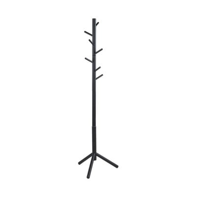 Skladá sa z viacerých dielov skrutkovaním do seba, drevený. Len si nie som istá, čo urobí, ak sa naňho zavesí jeden ťažší kabát...