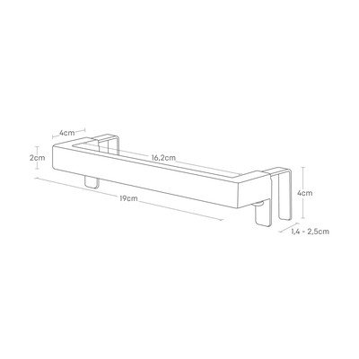 Závesný držiak na kuchynské utierky Tower od značky YAMAZAKI. Nastaviteľné upevnenie umožňuje jednoduchú inštaláciu bez vŕtania a stabilné prichytenie na rôzne hrúbky dvierok.