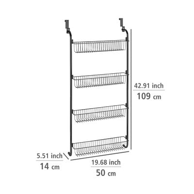 Zorganizujte si kuchyňu a pridajte do nej viac odkladacieho priestoru so závesným organizérom od značky Wenko. Ľahko ho pripevníte na dvere vďaka jednoduchému zásuvnému systému. Možné je aj skrutkové upevnenie do predvŕtaných otvorov. Organizér je vyrobený z chrómovanej ocele a kovu s práškovým lakovaním. Ochranné rytky tvoria plast PVC/PU.