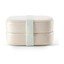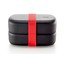 Desiatový box To Go od značky Lékué sa skladá z dvoch nádob s objemom 500 ml, ktoré sú spojené silikónovým pásikom pre ľahšie prenášanie. Box má zabudovaný ventil, ktorý zaisťuje bezpečné používanie v mikrovlnnej rúre a zároveň zabraňuje úniku obsahu. Príbory nie sú súčasťou balenia.