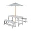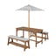 Outdoo+ od značky Roba je detský záhradný set, ktorý obsahuje dve voľne stojace lavice, stôl a slnečník. Vďaka nemu si deti môžu užívať pobyt vonku a hrať sa na čerstvom vzduchu. Súprava je vyrobená z masívneho dreva, ktoré je odolné voči poveternostným vplyvom a má robustnú konštrukciu. Zaoblené rohy hracieho stola zaisťujú optimálnu bezpečnosť. Súčasťou setu sú aj podsedáky a slnečník s motívom hviezdičiek. Všetky použité materiály sú testované na škodlivé látky, certifikované a ľahko sa čistia. Set je vhodný pre 4 deti.