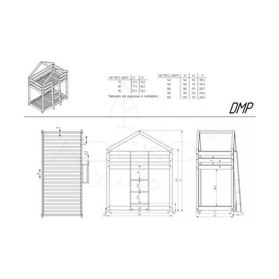Detská posteľ DMP80x160 cm, domčeková/poschodová, s roštom, z borovicového dreva, povrchová úprava: bez ošetrenia/povrchová úprava: kefovanie, v prírodnej farbe