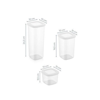 - 3x dóza s objemom 500 ml s rozmerom 10 x 10 x 9,5 cm,
