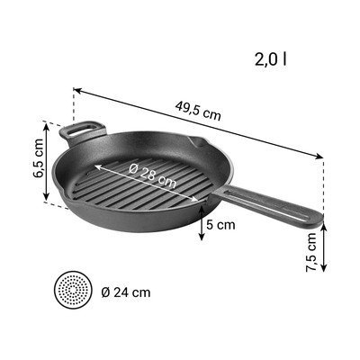 Panvica Massive vám pomôže s prípravou steakov, zeleniny a ďalších pokrmov. Vďaka liatinovému povrchu panvica akumuluje teplo. Vaše pokrmy budú správne prepečené a zároveň aj rýchlo hotové. Pred prvým použitím je nutné vytvoriť ochrannú vrstvu. Tú vytvoríte nanesením tenkej vrtvy oleja po celom povrchu. Následne túto vrtvu vypálite zahriatím na sporáku či v rúre na pečenie. Liatinový riad s ochrannou vrstvou má nepriľnavé vlastnosti a je chránený proti korózii. Panvicu môžete použiť v Power grile Party Time. Čistenie: Čistite po každom použití vodou a špongiou. Nepoužívajte čistiace prostriedky.