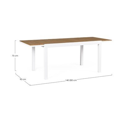 Hliníkový záhradný jedálenský stôl Elias od značky Bizzotto s pevnou konštrukciou z hliníka v bielej farbe je ideálnou voľbou na vonkajšie posedenie. Doska stola s imitáciou dreva dodáva stolu Elias prírodný vzhľad.