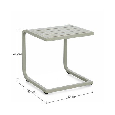 Záhradný stolík Taylor od značky Bizzotto. Unikátny C-tvar stolíka umožňuje ľahké prisunutie k pohovke či kreslu, čo z neho robí praktického spoločníka na terasu.