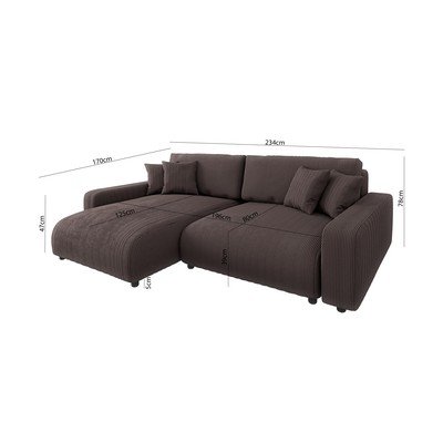 Menčestrová, rozkladacia/s úložným priestorom, pravý roh/ľavý roh/variabilná/s leňoškou, hnedá, trojmiestna, šírka 234 cm
