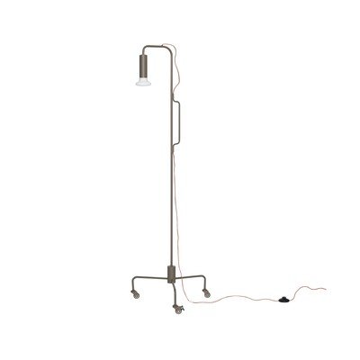 Stojacia lampa Ido od značky Hübsch. Je vybavená kolieskami, ktoré umožňujú ľahké premiestňovanie a ideálne umiestnenie osvetlenia.
