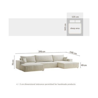 Rohová pohovka do tvaru U Kyoto od značky Maison de Rêve. Ponúka variabilné usporiadanie, možnosť rozloženia na pohodlné lôžko a praktický úložný priestor.