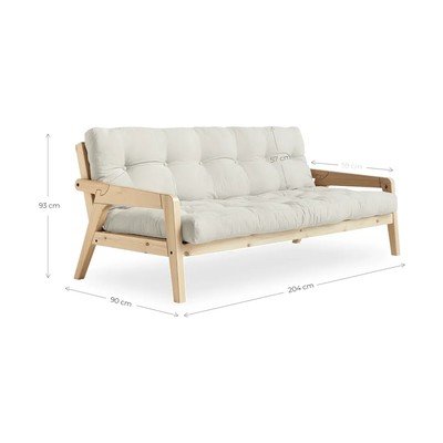 Pohovka Grab je ideálnym spoločníkom ako pohovka aj v rozloženom stave ako dvojlôžko. Podrúčky sú navrhnuté tak, aby sa ľahko uvoľnili a mohli byť použité ako zadné nohy pri dvojlôžkovej posteli, čo veľmi uľahčuje premenu pohovky na posteľ. Okrem toho je pohovka Grab dodávaná s pohodlným futónovým matracom.
