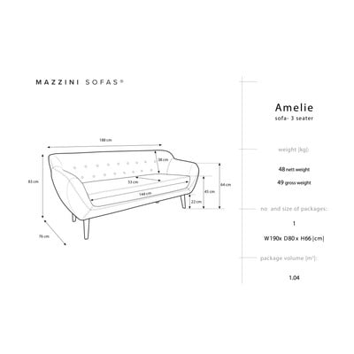 ZamatováŽltáDvojmiestnaŠírka 188 cmHĺbka 76 cmHĺbka sedadla 53 cm