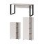 Nižšia skrinka s rozmermi 61 x 34 x 110 cm (šírka x hĺbka x výška) ponúka tri otvorené priehradky a jeden úložný priestor skrytý za dverami, za ktorými sa nachádzajú dve pevné police.