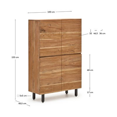 Z masívu akáciePovrchová úprava: bielenieMatnáV prírodnej farbeŠírka 100 cmVýška 155 cmHĺbka 40,5 cm