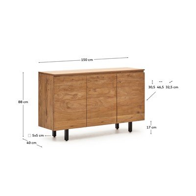 Komoda Uxue od značky Kave Home prináša do každého priestoru čistý a moderný dizajn. Je vyrobená z masívneho akáciového dreva, ktorého povrchová úprava zvýrazňuje prirodzenú kresbu a dodáva nábytku jedinečnú hrejivosť a svetlosť.
