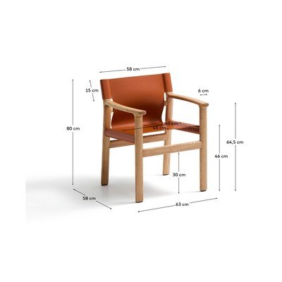 Jedálenská stolička s podrúčkami Jan od značky Kave Home. Sedadlo z recyklovanej kože a konštrukcia z masívneho jaseňového dreva sú nielen odolné, ale aj šetrné k životnému prostrediu.