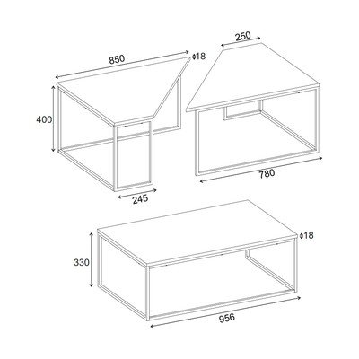 menší stolík je vysoký 41,8 cm a má rozmery 96 x 60 cm.