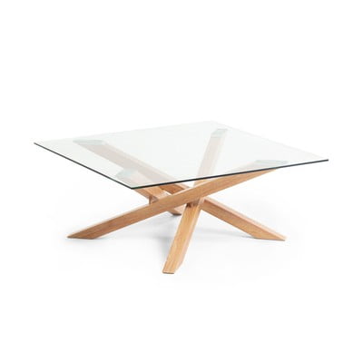 Konferenčný stolík MikadoSo sklenenou doskou, v prírodnej farbe, 90x90 cm, výška 38 cm