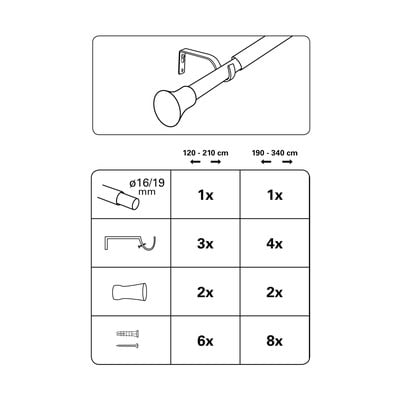 kovovej garniže od značky Gardinia, ktorá je dodávaná vrátane nosníkov, koncoviek aj všetkého potrebného montážneho materiálu. Hodí sa pre závesy s gramážou do 300 g/m2.