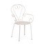 Záhradná stolička Etienne od značky Bizzotto. Odolná kovová konštrukcia je doplnená o prepracované operadlo s dekoratívnymi prvkami.