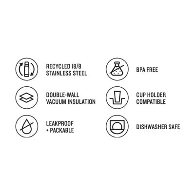 Fľaša je vyrobená z recyklovanej 18/8 nehrdzavejúcej ocele a má dvojstennú vákuovú izoláciu, takže udrží nápoj studený až 6 hodín a teplý až 4 hodiny (ľad až 11 hodín). Kompatibilný so všetkými automobilovými držiakmi.