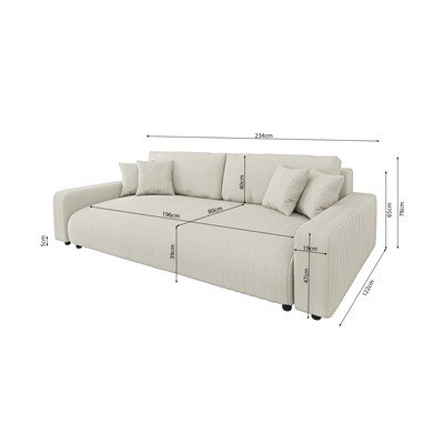 Menčestrová, rozkladacia/s úložným priestorom, krémovobiela, trojmiestna, šírka 234 cm