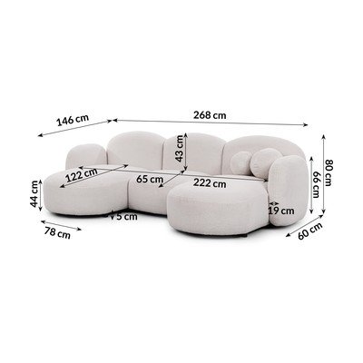 Z textílie bukléDo tvaru "U"KrémovobielaVodoodolná/odolná proti škvrnámŠtvormiestnaŠírka 268 cm