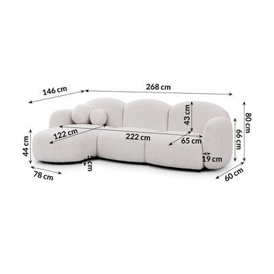 Z textílie bukléĽavý roh/s leňoškouKrémovobielaVodoodolná/odolná proti škvrnámŠtvormiestnaŠírka 268 cm