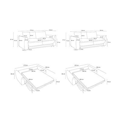 Na každodenné spanie/rozkladacia, krémovobiela, trojmiestna, šírka 234 cm