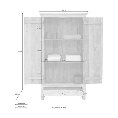 Z mangového drevaPovrchová úprava: lakovanieKrémovobielaŠírka 100 cmVýška 180 cmHĺbka 40 cm
