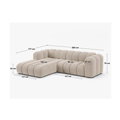 Rohová pohovka Lupine od značky Micadoni. Súčasťou pohovky je praktická leňoška, ktorá poskytuje ideálny priestor na pohodlný odpočinok a relaxáciu.