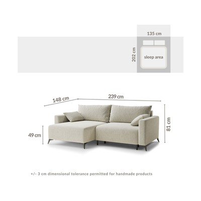 ŽenilkováRozkladacia/s úložným priestoromĽavý roh/s leňoškouKrémovobielaTrojmiestnaŠírka 239 cmHĺbka 148 cmHĺbka sedadla 65 cm