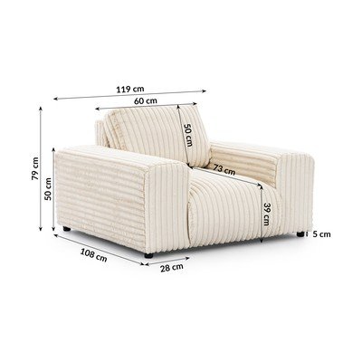 Krémové menčestrové kreslo Justin – Ropez