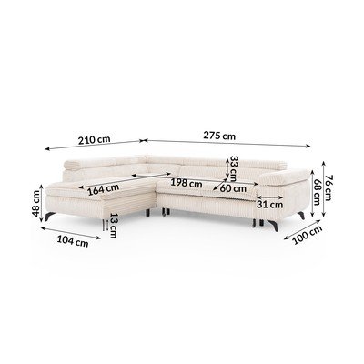 MenčestrováPolohovacia/rozkladacia/s úložným priestoromĽavý roh/do LKrémovobielaVhodná pre domácich miláčikov/odolná proti škvrnámŠtvormiestnaŠírka 275 cm