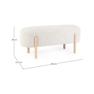 Z textílie buklé, polstrovaná, krémovobiela, šírka 108 cm, hĺbka 41,5 cm, výška 48 cm