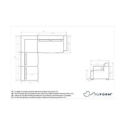 Ľavý roh/do LKrémovobielaViacmiestnaŠírka 265 cm