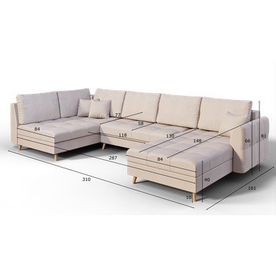 Pravý roh/do tvaru "U", béžová, viacmiestna, šírka 310 cm