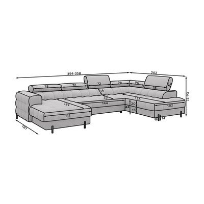 Z textílie bukléPolohovacia/rozkladaciaPravý roh/do tvaru "U"KrémovobielaViacmiestnaŠírka 358 cm