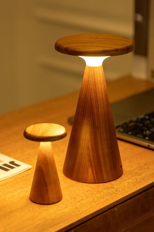 Lampa je dobíjacia cez USB-C. Jej základňa je opatrená mäkkou podložkou, ktorá chráni povrch nábytku pred poškriabaním.